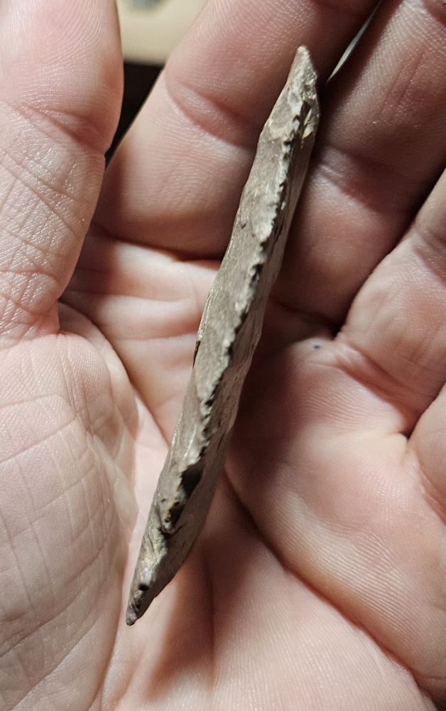 Very nice Newton Falls point from Knox Co, Indiana. Extremely well made and very thin. Measures 2 5/8 inches long. One of the best features on this piece that I appreciate is the broad tip, very nice configuration.