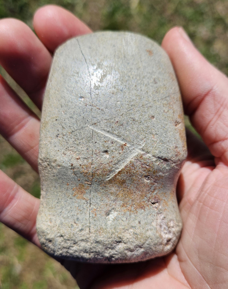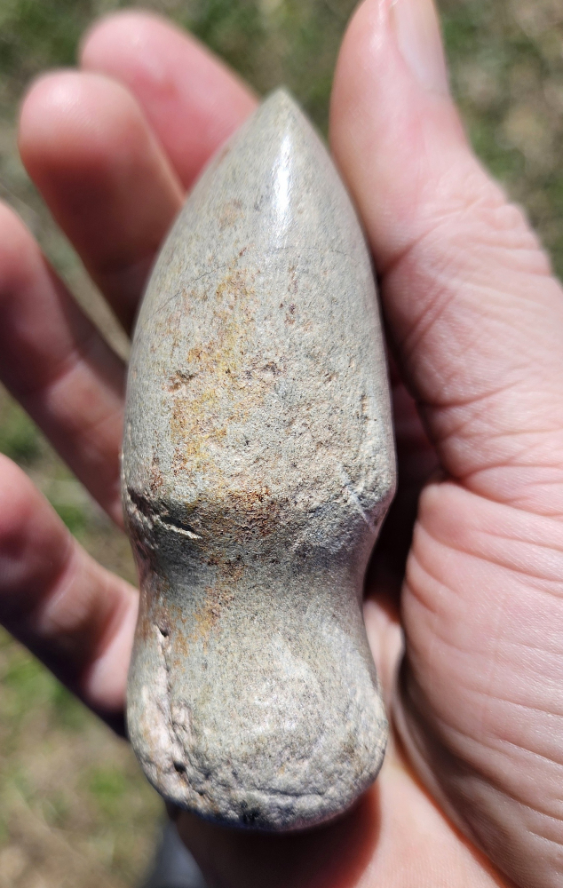 Nice full groove pocket axe from Posey Co, Indiana. Nicely made full groove with very neat lines running through the material. Measures 3 1/4 inches long. Great little axe for any size collection!