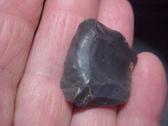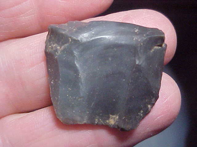 When a 'flute strike' went wrong the flute channel could 'dive' from one face towards the reverse face--look at the pics 'on end' of this broken 'almost there' Clovis, it'll make more sense that a long-winded explanation. Typically, the end is rounded, not a clean 'snap off' as you'd get on a broken point. Not being willing to let a good piece of flint go to waste, these 'flute failures' often show work polish as they were converted into end scrapers. A close up photo should show the very tiny use-made chips that tell you the piece was then used as a scraper--call it a hafted scraper (blunt), if you will--that was its purpose. Here, the hornstone is slightly over 1" in length, 1&3/16" wide, 5/16" max thickness. There was only marginal effort put into basal edge dulling, only slightly more grinding than that on the lateral edges. The finder lived in Posey County, Indiana, but much of his collection came from his growing up home near Elizabethtown, KY--the flint (if it isn't hornstone) is the Kentucky Blue Flint of his childhood home--high quality flint, regardless. Shipping is $8.00, checks or M.O.s are the two ways the piece can be paid for, but please note I do not use paypal-type services--Roy A.