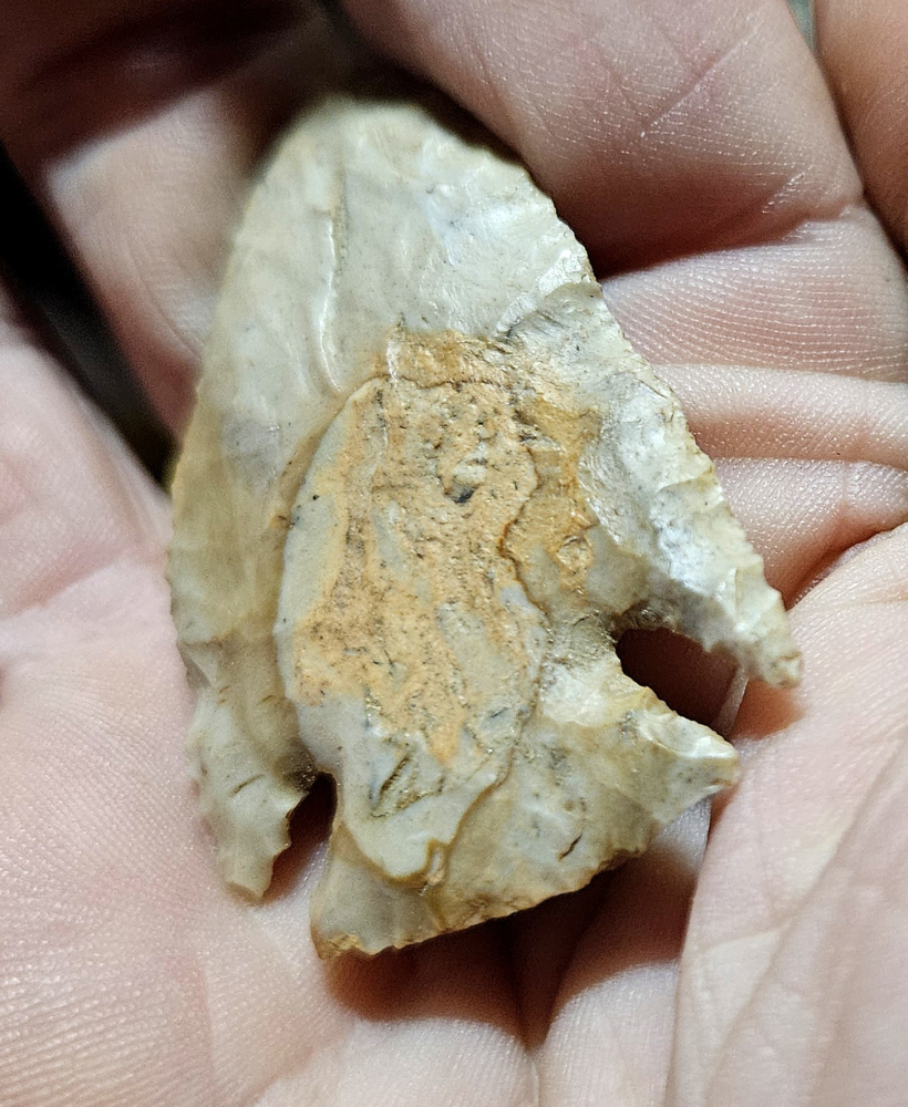 Fantastic Kirk Corner notched point from Posey Co, Indiana. Insanely well made with super thinness on an gorgeous colorful derby variant. Measures 2 inches long. Great addition for your southern Indy collection!