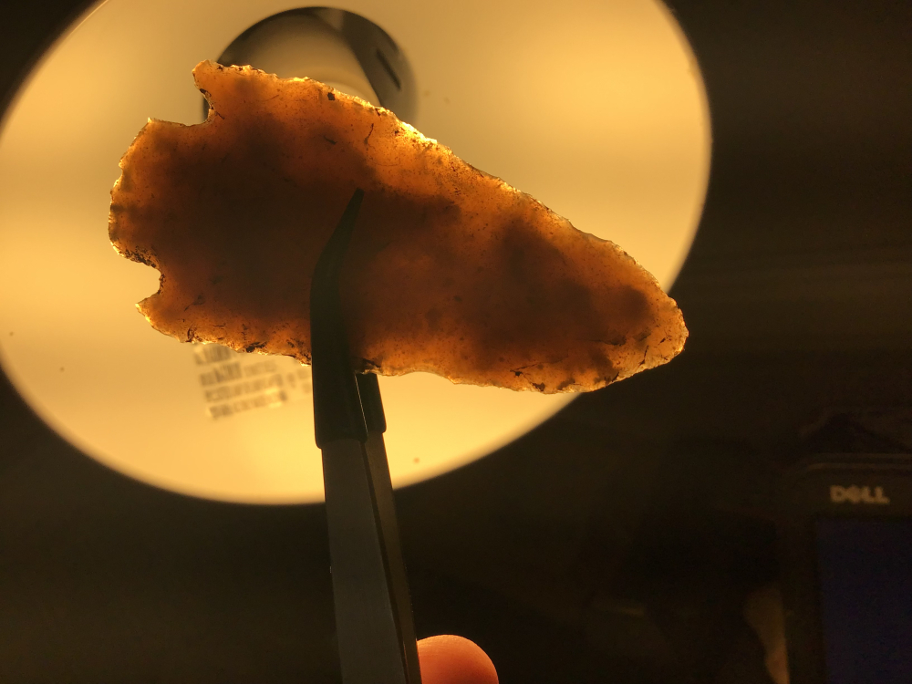 This Marshall, from Bandera County, is semi-translucent, well flaked, thin, with a nice tip. The base is not perfect, but not too bad either. I have the shipping and will guarantee authenticity and satisfaction.