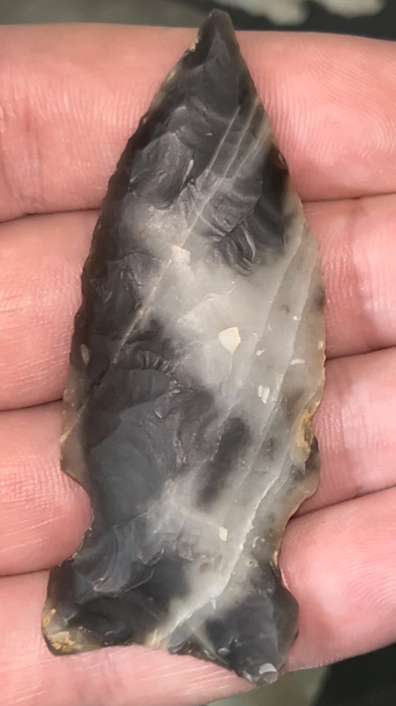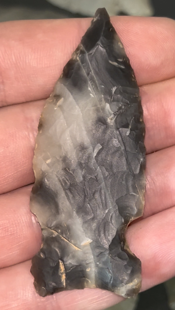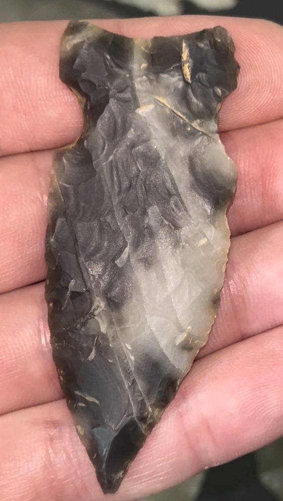 A fine Graham Cave found in Arkansas. Made from beautiful black and white spiderweb Novaculite. Well made and thin.