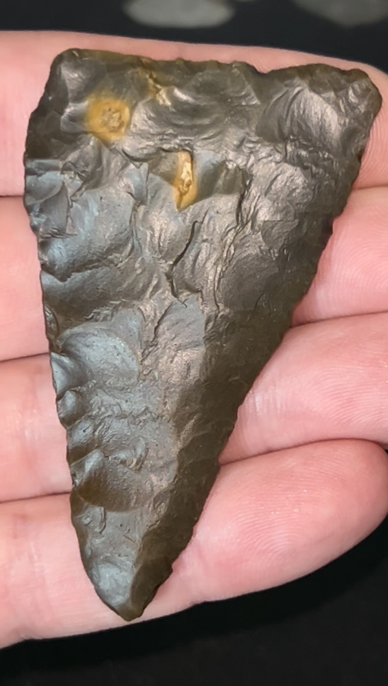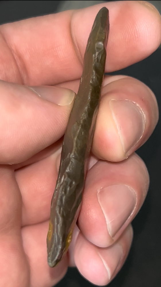An excellent Cobbs blade found in Meade County, Kentucky. Made from what appears to be heavily water patinated Sonora chert. Well made with nice flaking and resharpening.