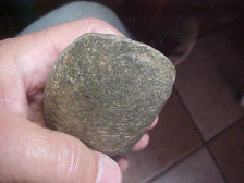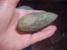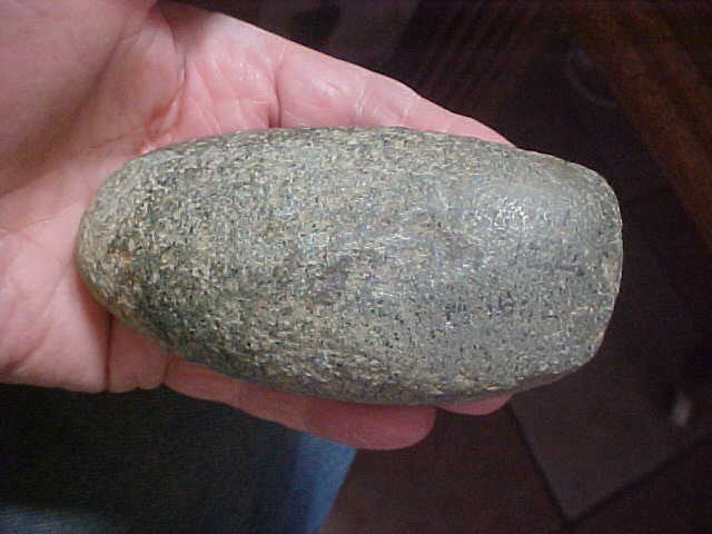 Slightly over 4&3/8" by 2&1/8", 1&1/2" thickness in the center of the Celt. The piece, a find from the Bond--Montgomery County, Illinois, area is Woodland Culture--Adena Culture would be my guess, based on the form. The bit--pictures show the completeness is excellent--weight is extra heavy as the material they used is Greenstone, that heavy, very hard river cobble favored by ancient users. The finder wrote some provenance on the bit area, but other than reading-off Illinois, too many of the numbers/ characters have worn too much--maybe you'll have more luck at reading it than I have. Every detail is real, period. Shipping is $12.00, checks or M.O.s are the ways the piece can be paid for, but please note I do not use paypal-type services--Roy A.